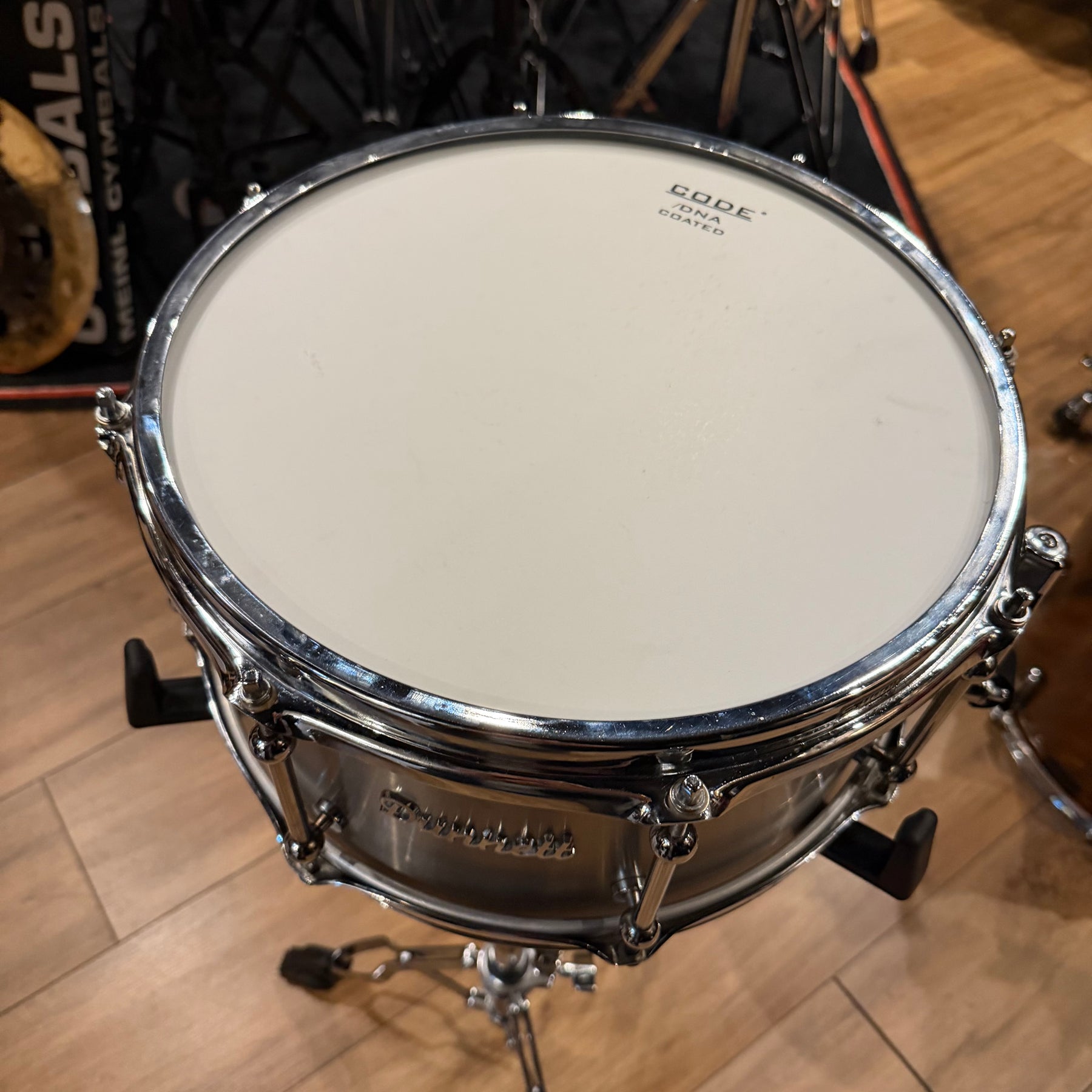 Cymbals, snare and cymbal stand not included