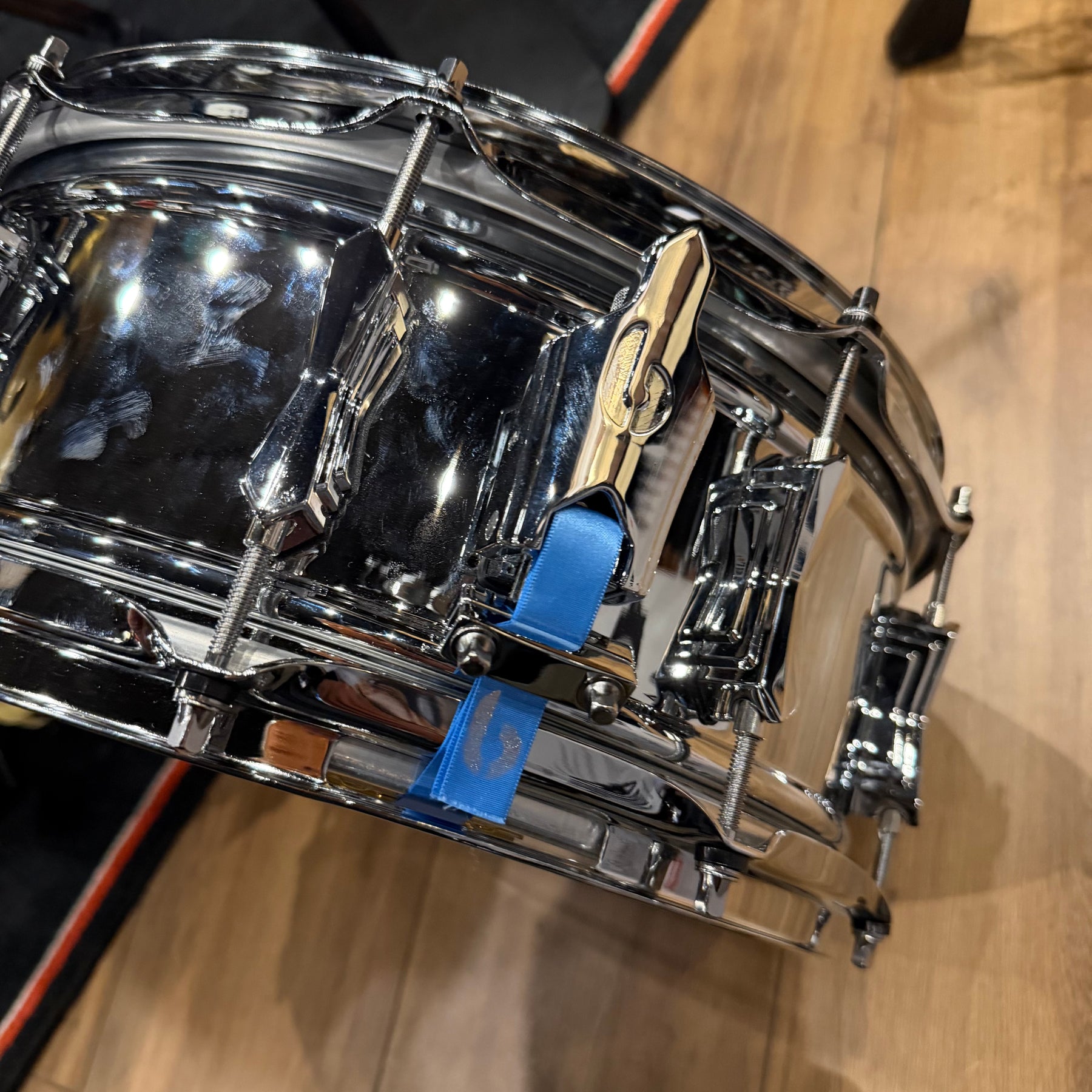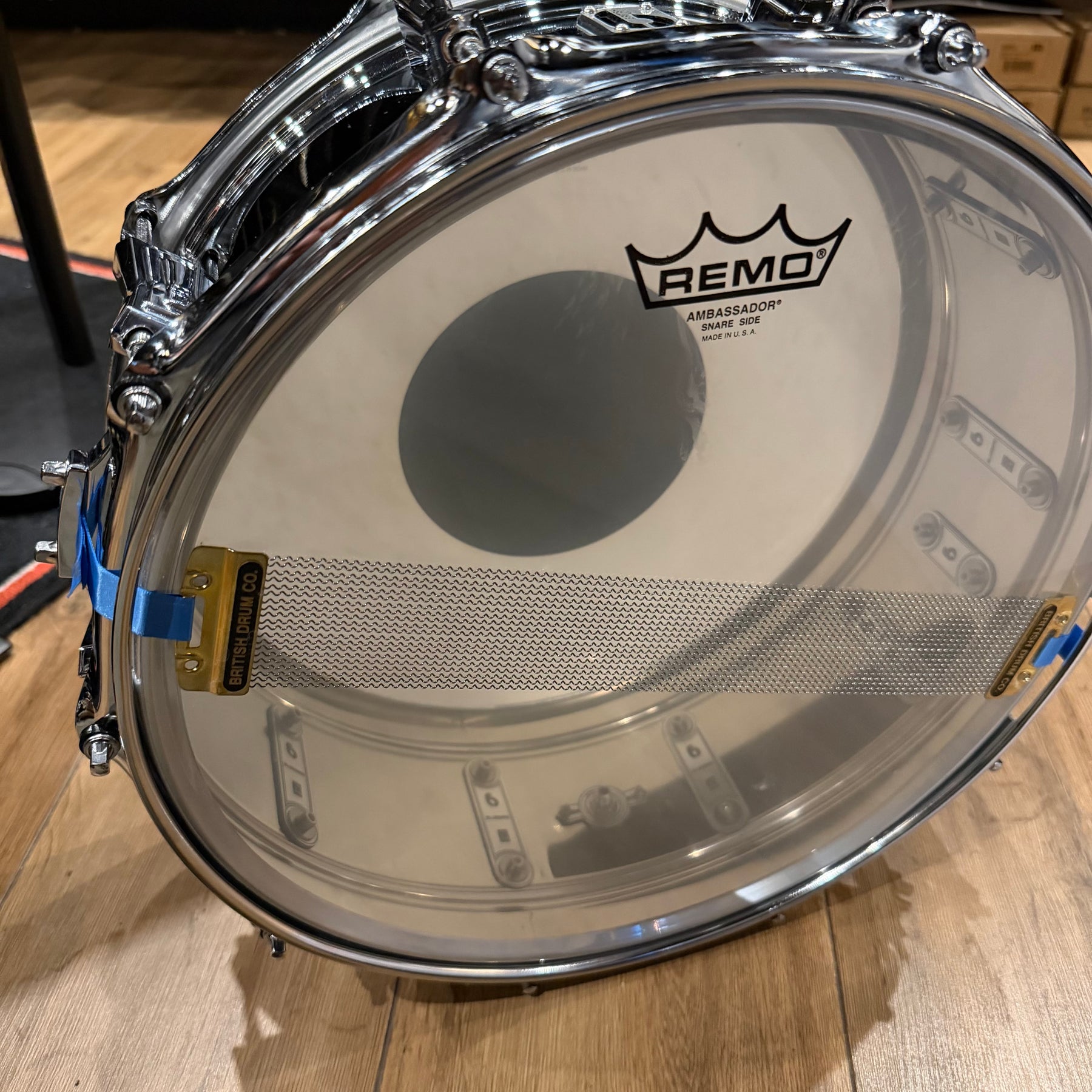 With its signature blue logo badge, this drum features a double-beaded 6" deep brass shell finished in a lustrous chrome plating. It could well become a future classic!