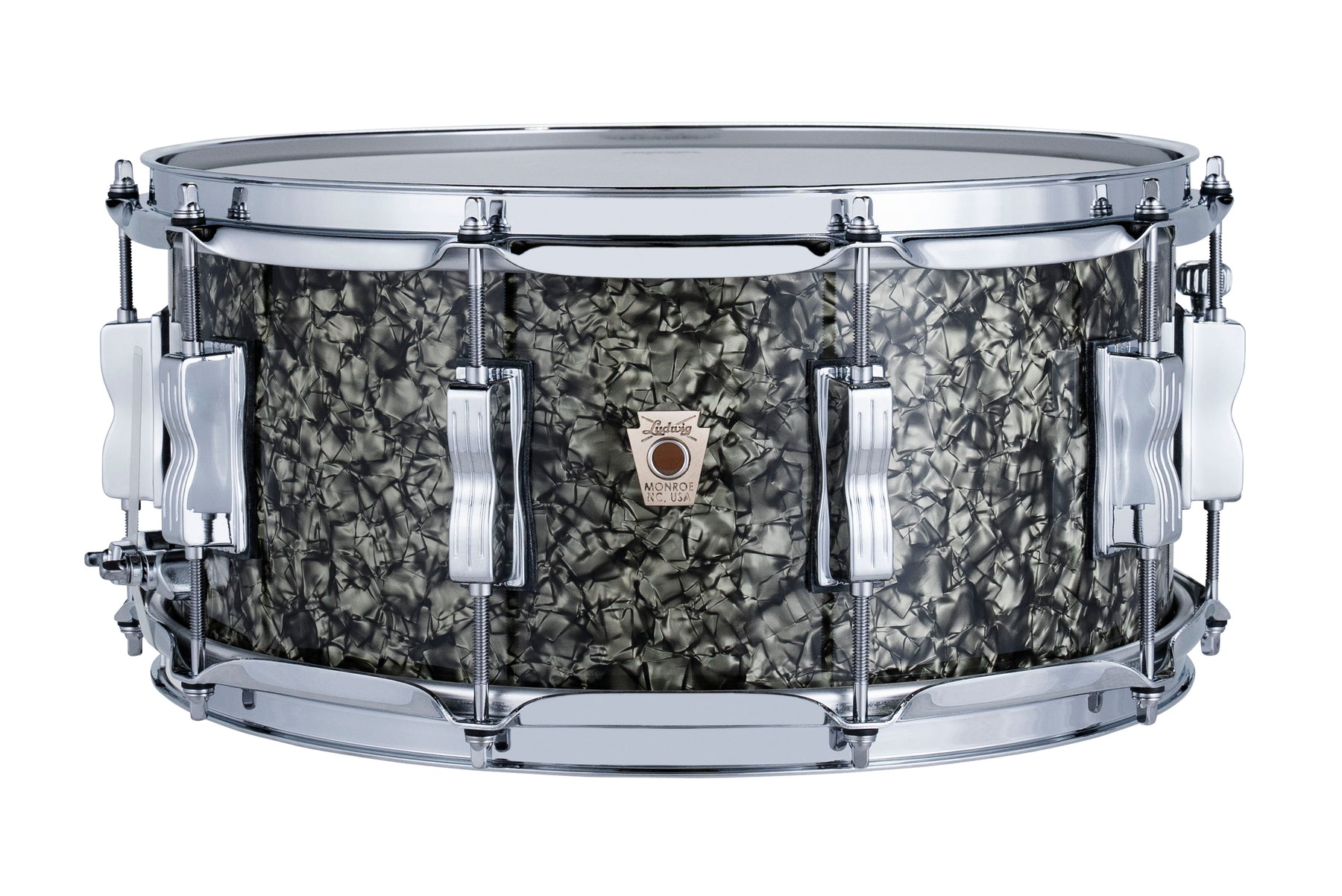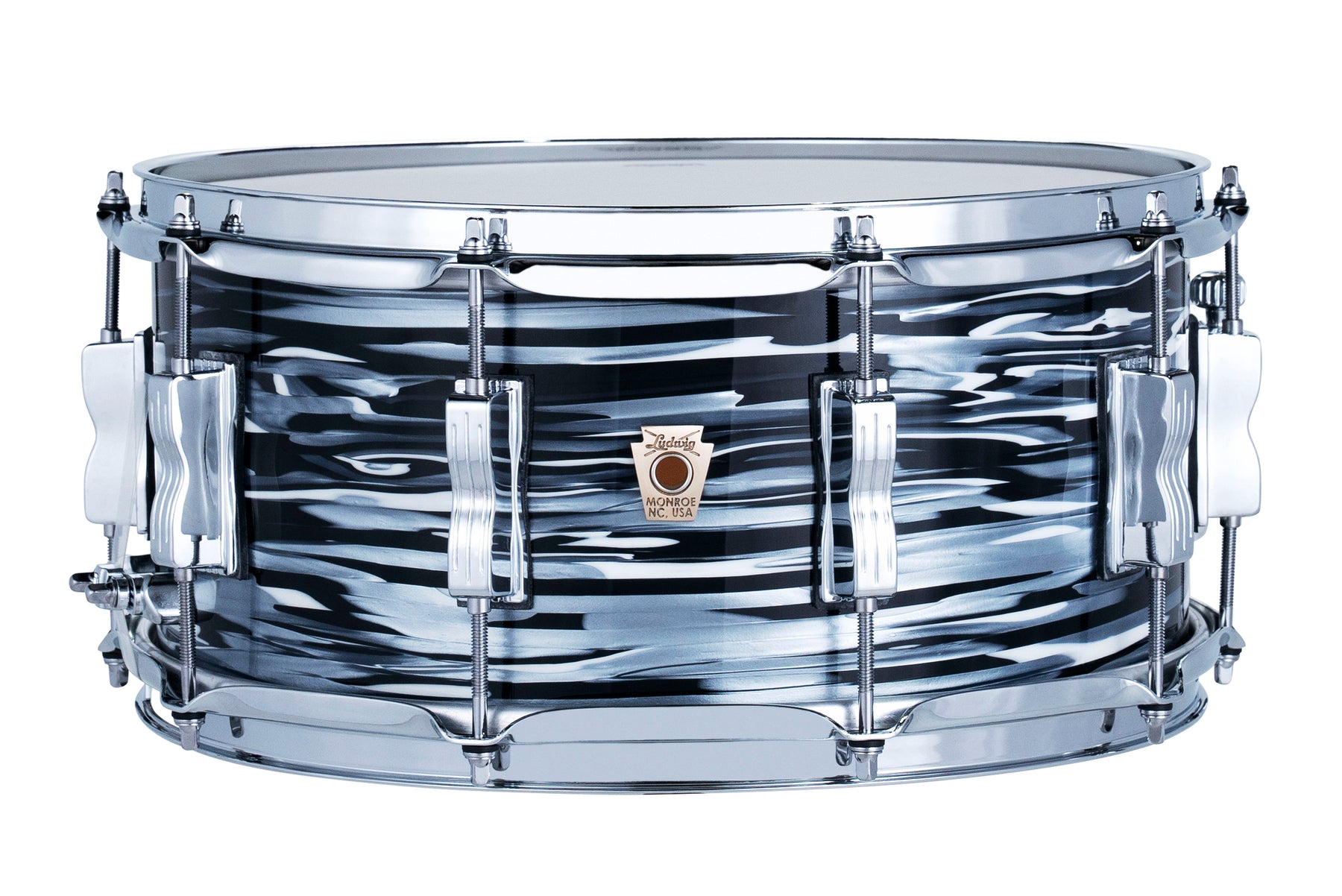 First introduced to the market in the 1950s as the Buddy Rich Model Snare Drum, the Jazzfest took on its first form in the early 1960s as a 5.5″ depth snare. This version of the Jazzfest would come to join the iconic line-up of tracks that Ludwig snares drums dominate. It features a 3-ply Legacy Mahogany shell, vintage ‘64 snare bed, 8 twin lugs, 3-step baseball bat tone-control and a white “Reso-Coat” interior.