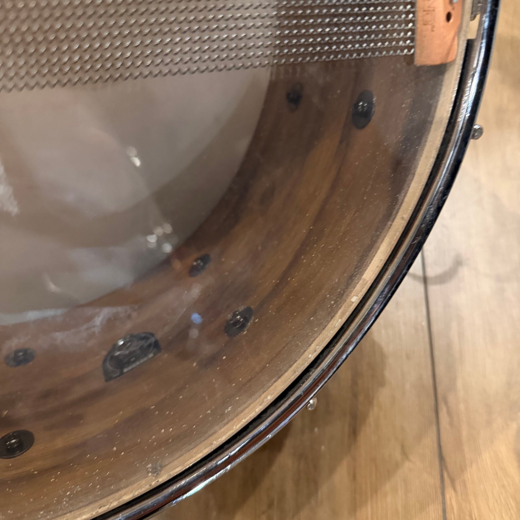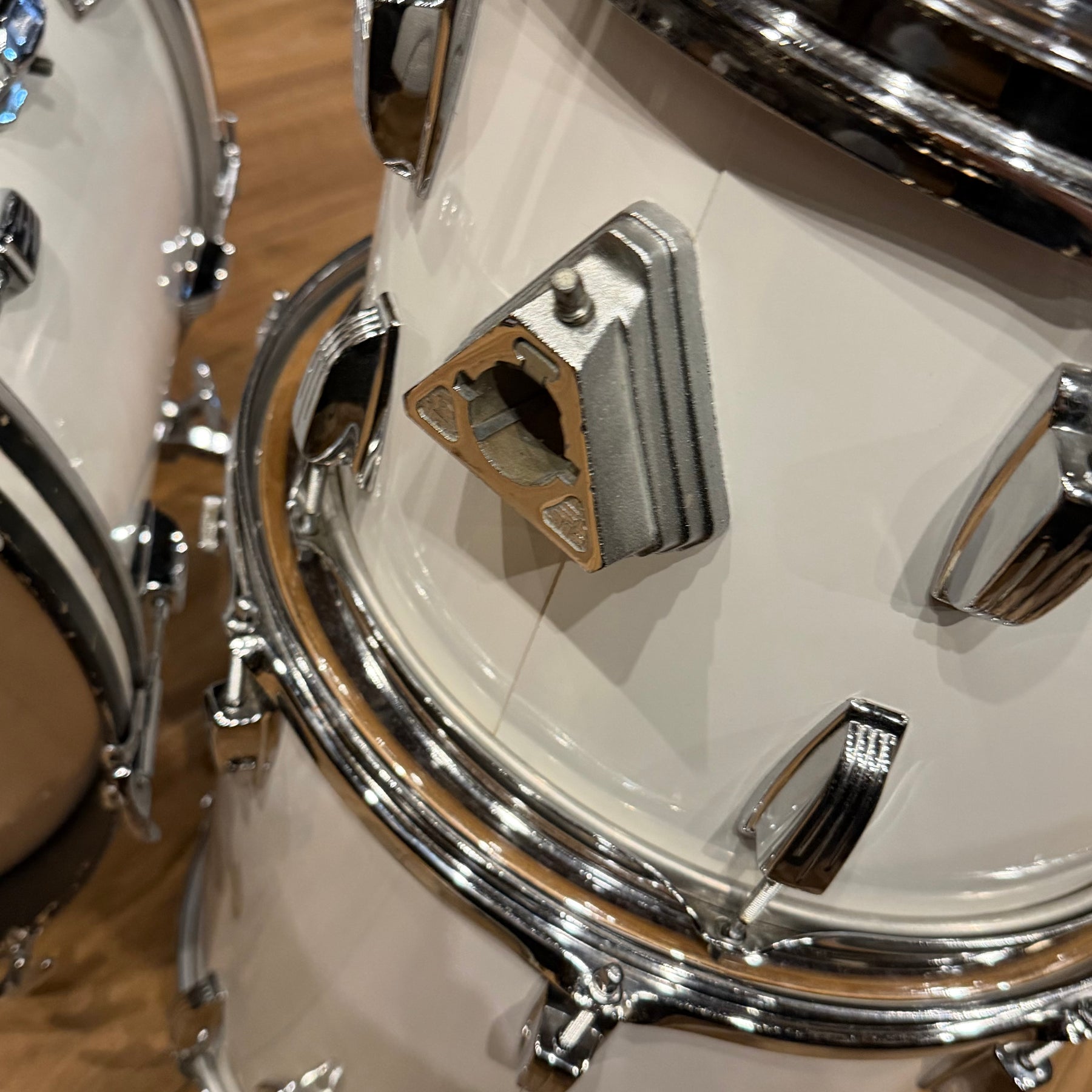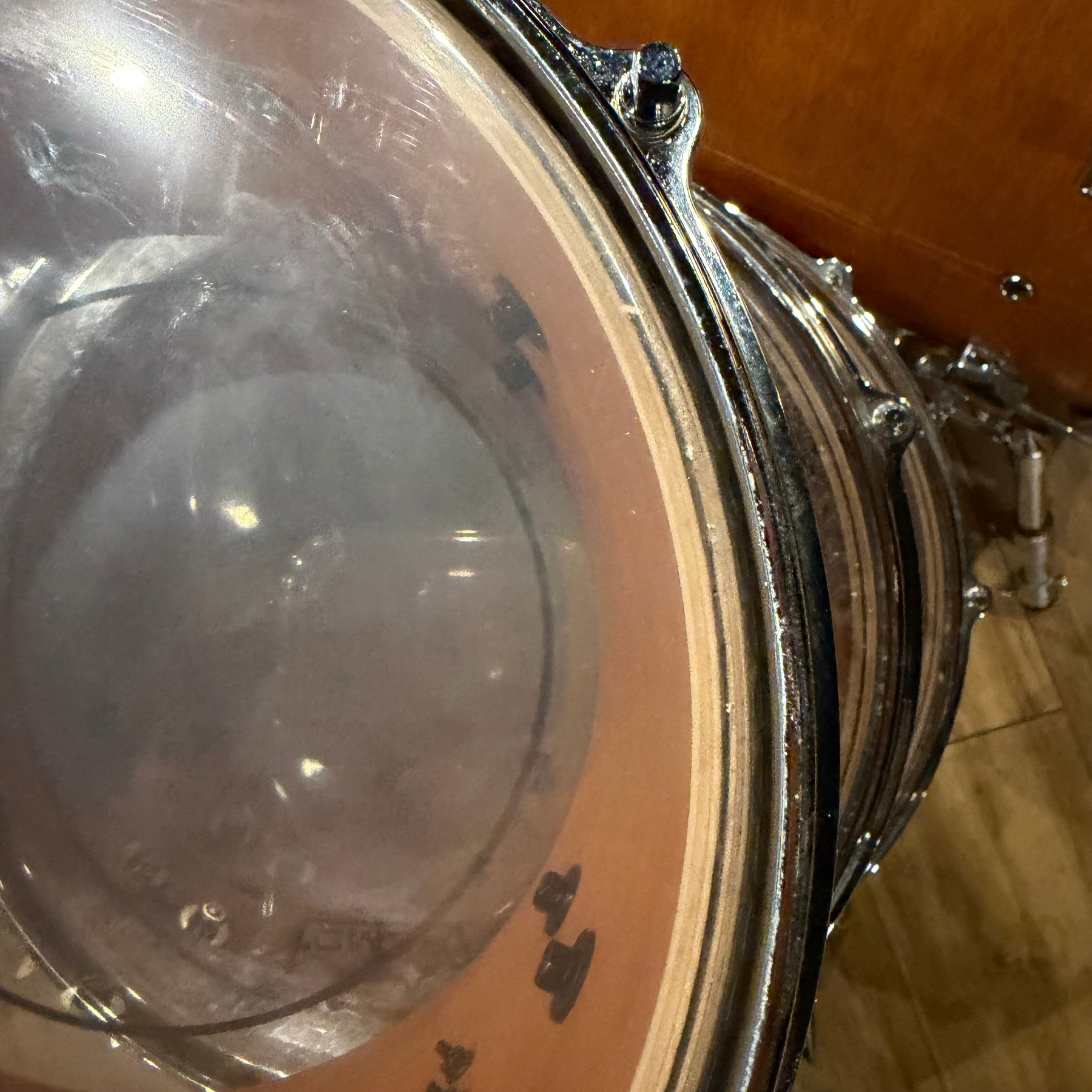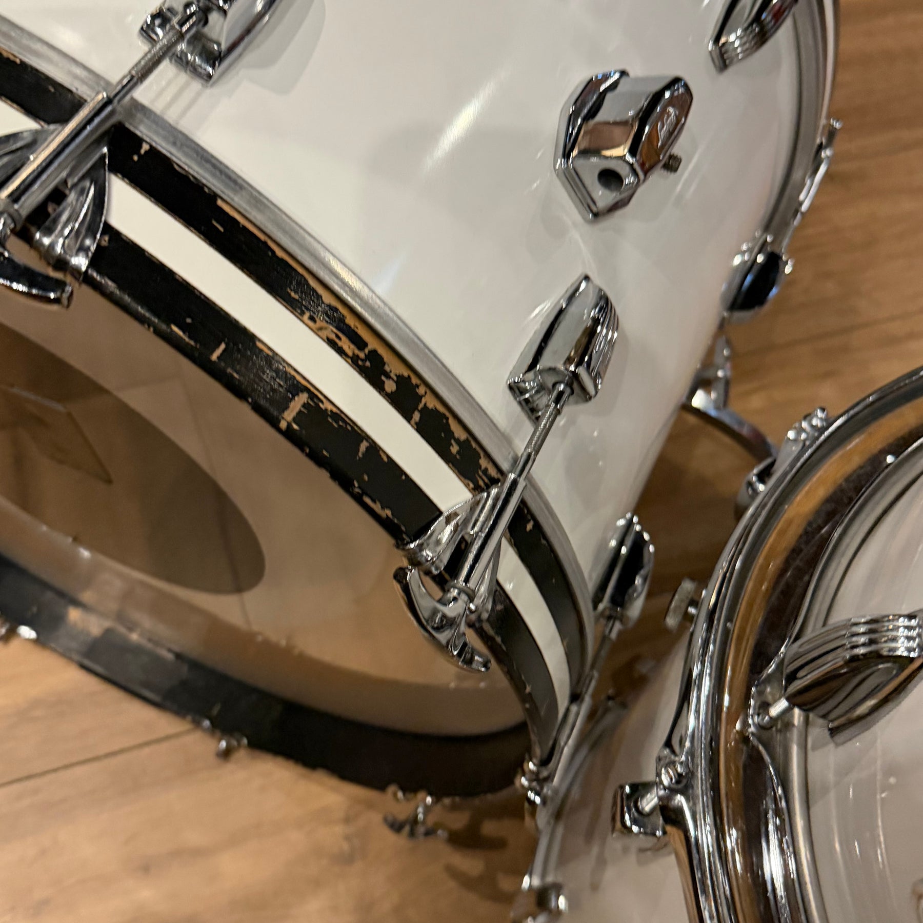 this is a vintage kit so there are a few scratches to the acrylic and some heavy marking on the bass drum hoop as shown but structurally the kit is sound