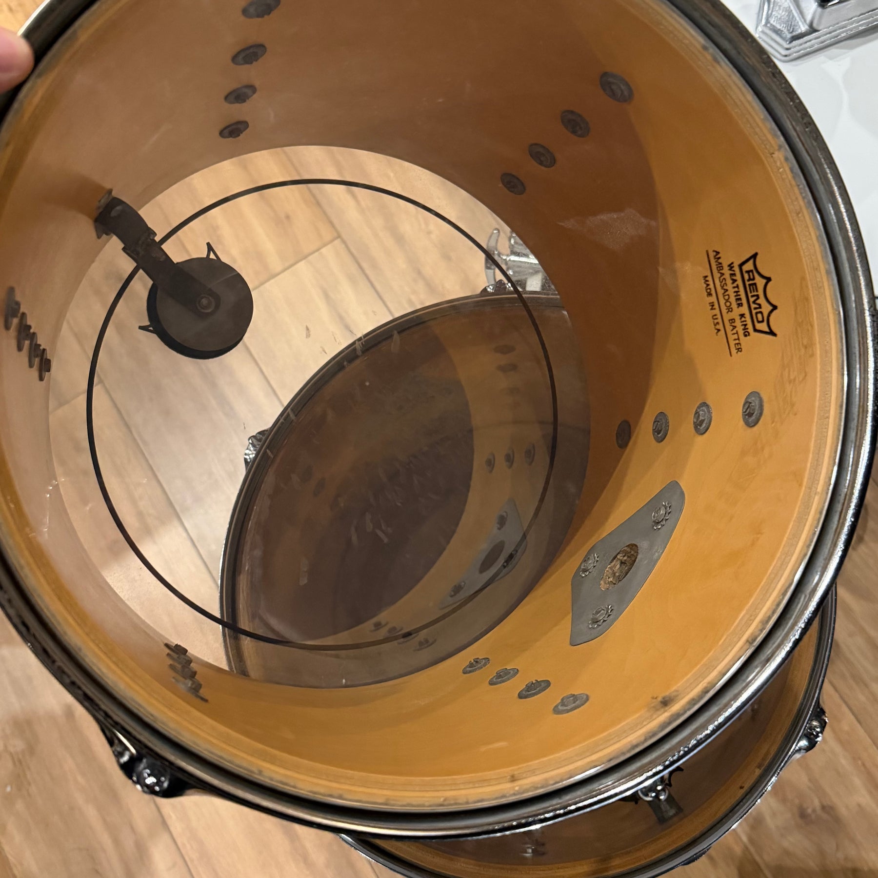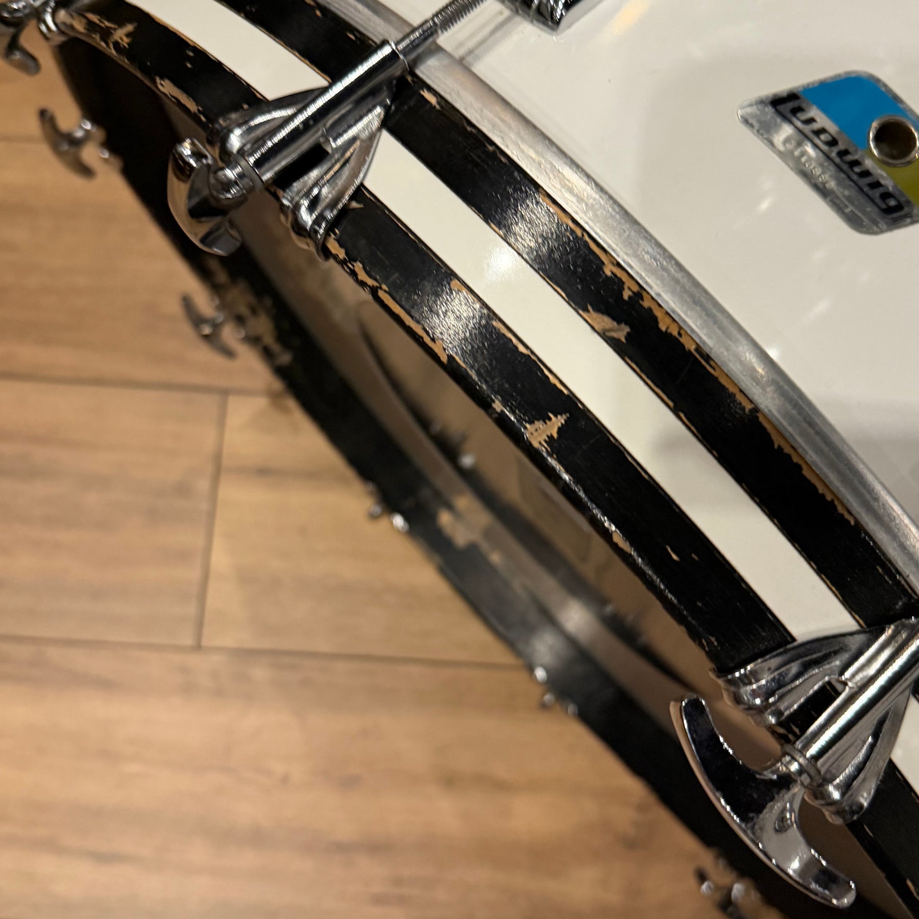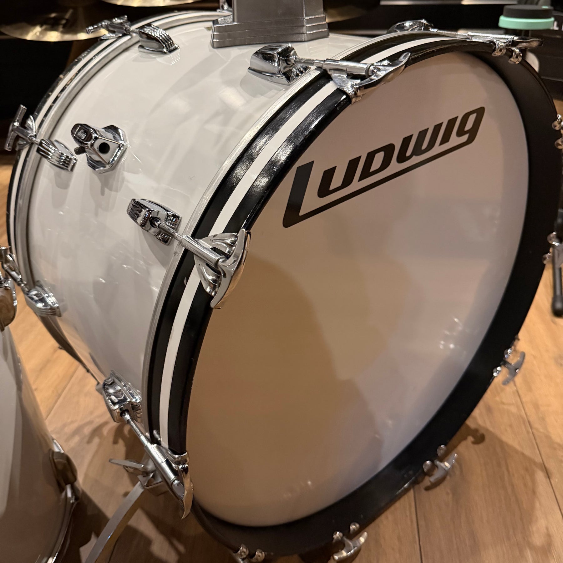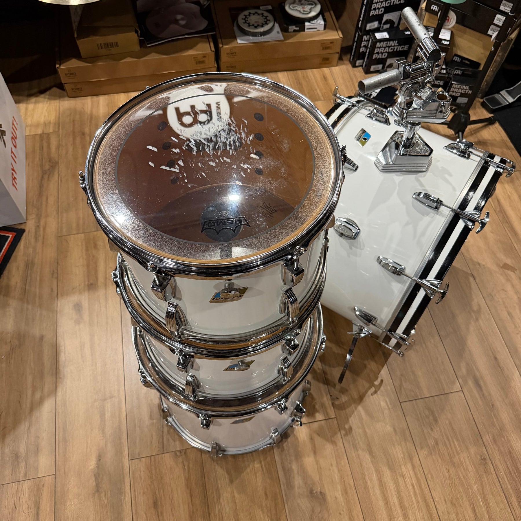 this is a vintage kit so there are a few scratches to the acrylic and some heavy marking on the bass drum hoop as shown but structurally the kit is sound