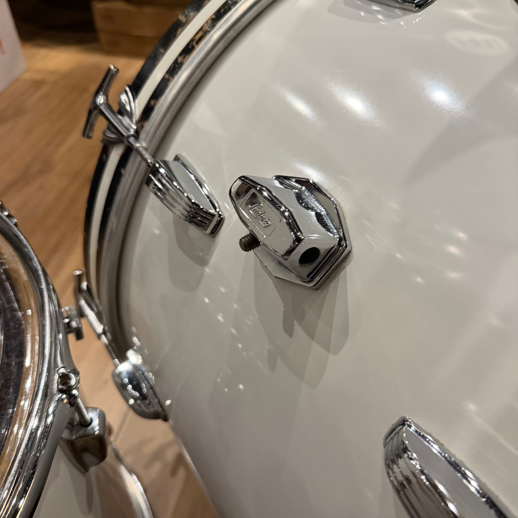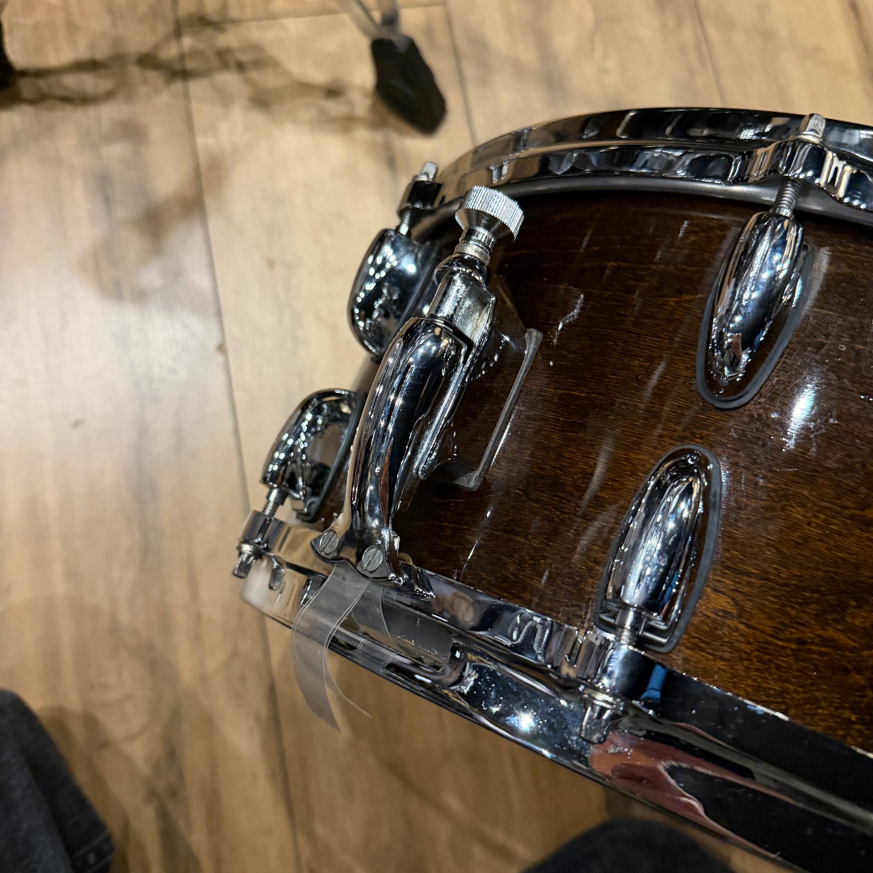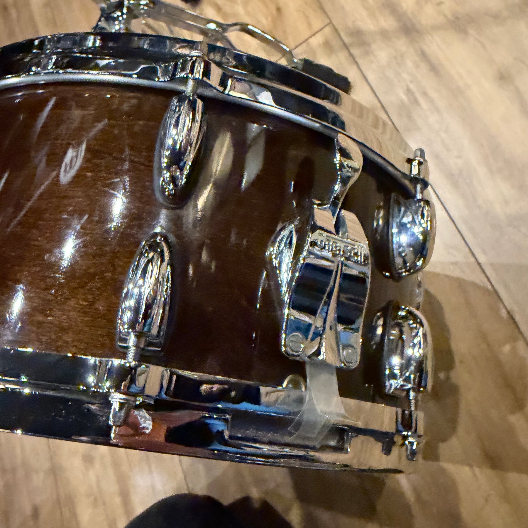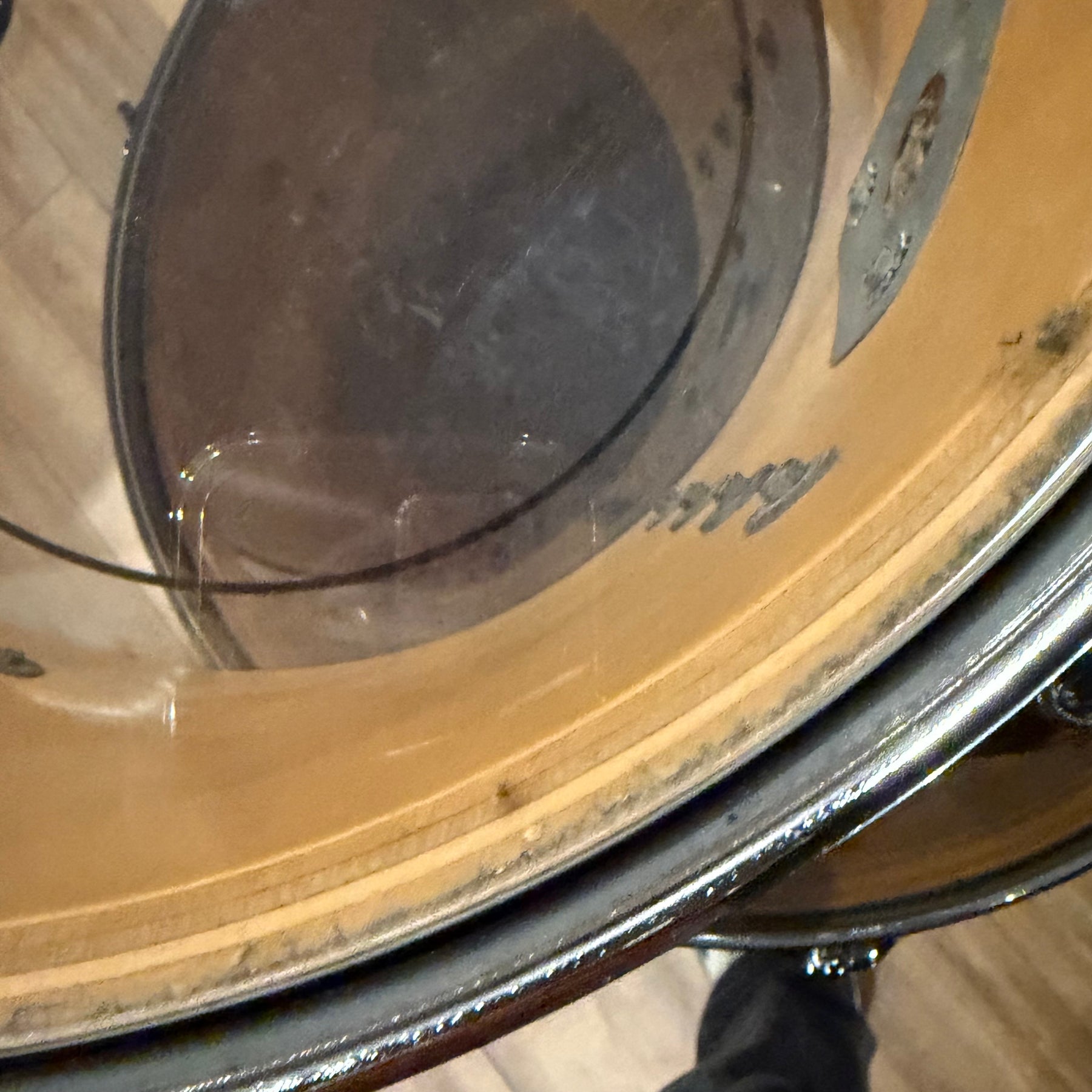 this is a vintage kit so there are a few scratches to the acrylic and some heavy marking on the bass drum hoop as shown but structurally the kit is sound