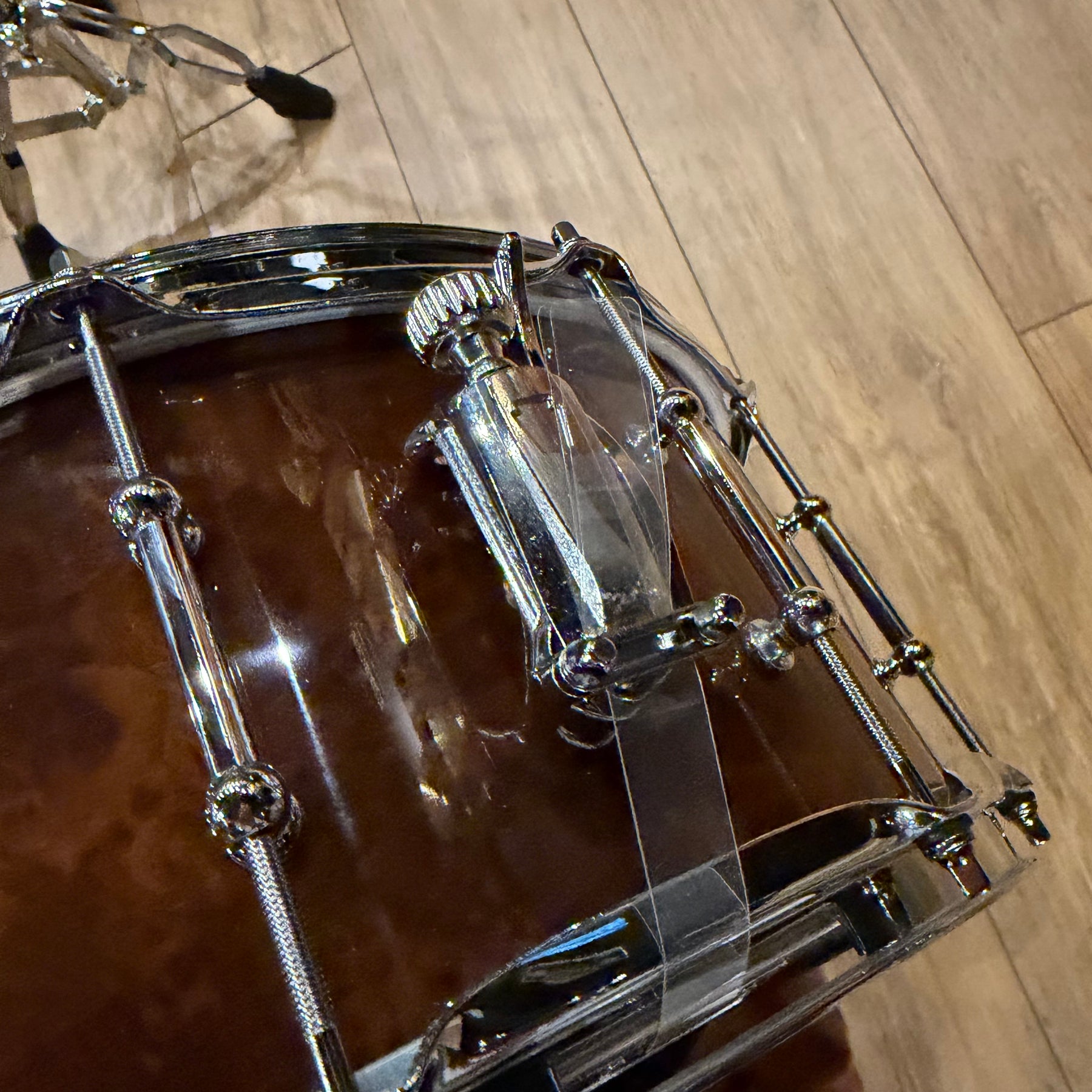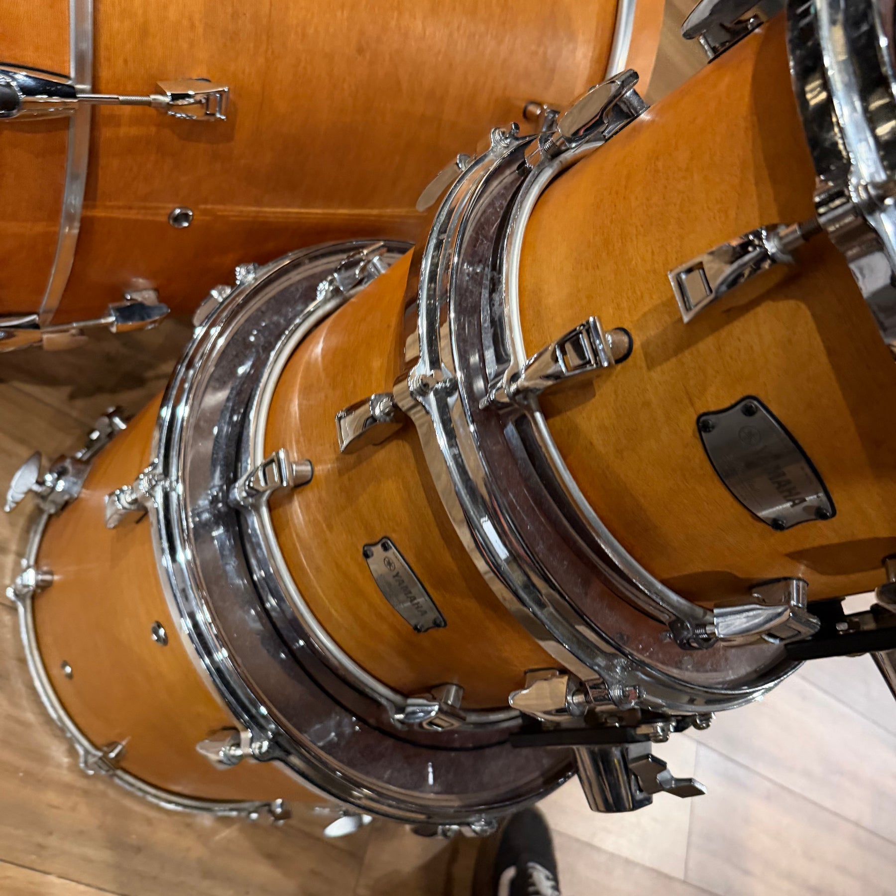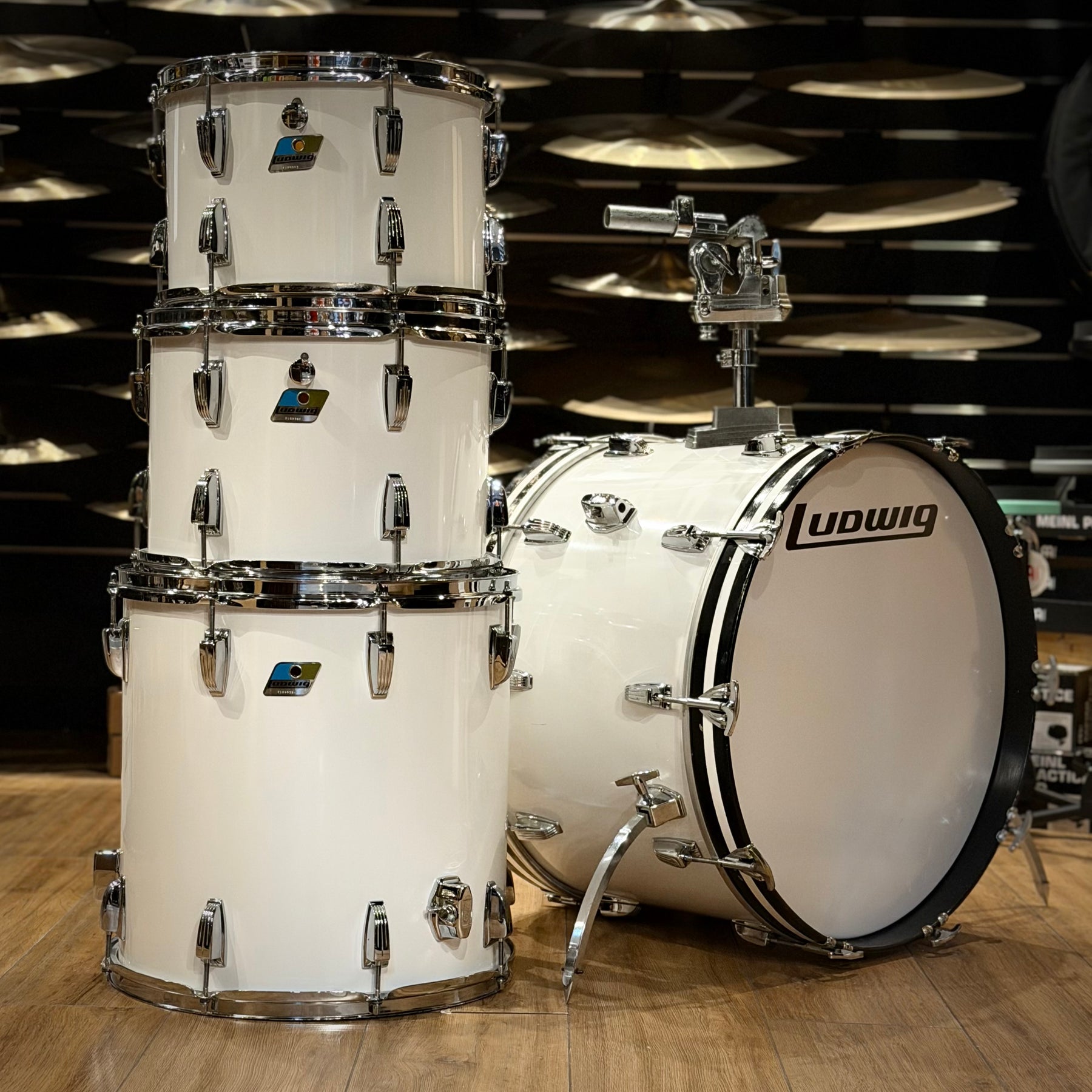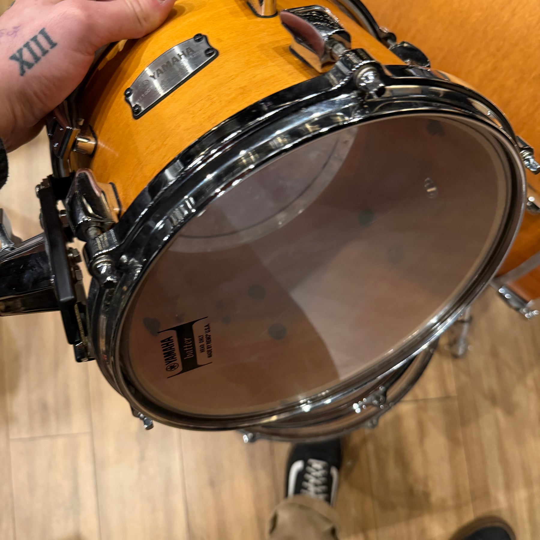 this is a vintage kit so there are a few scratches to the acrylic and some heavy marking on the bass drum hoop as shown but structurally the kit is sound