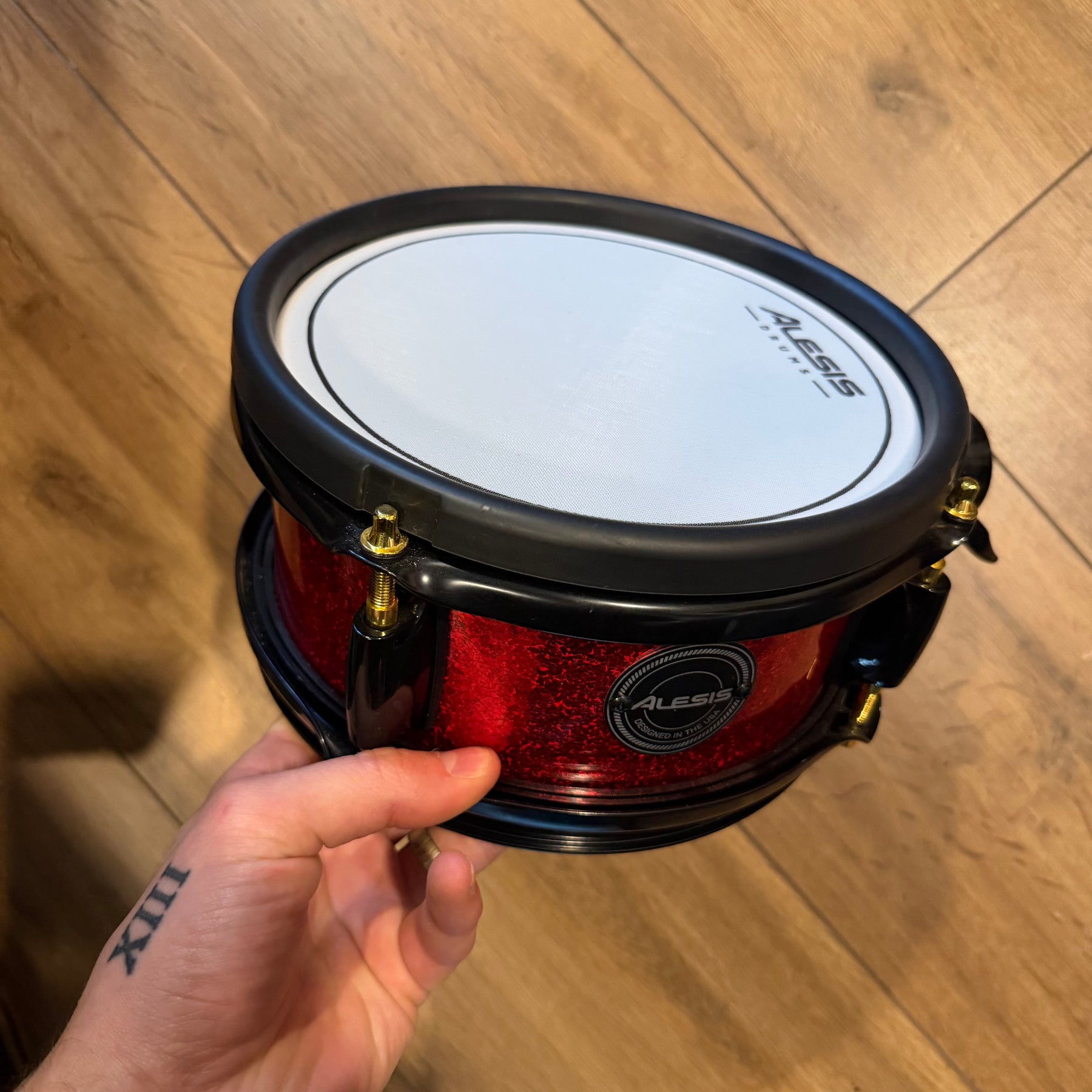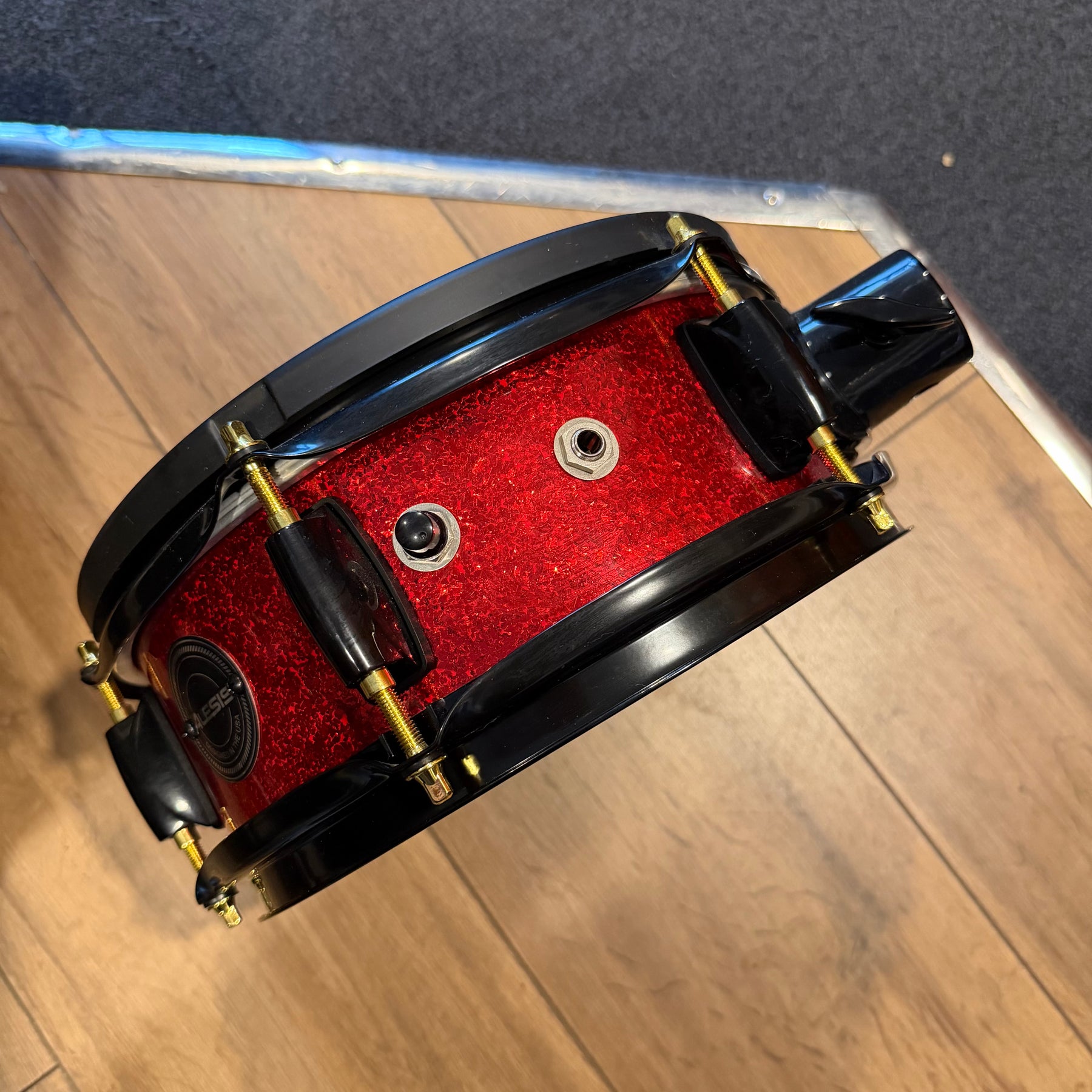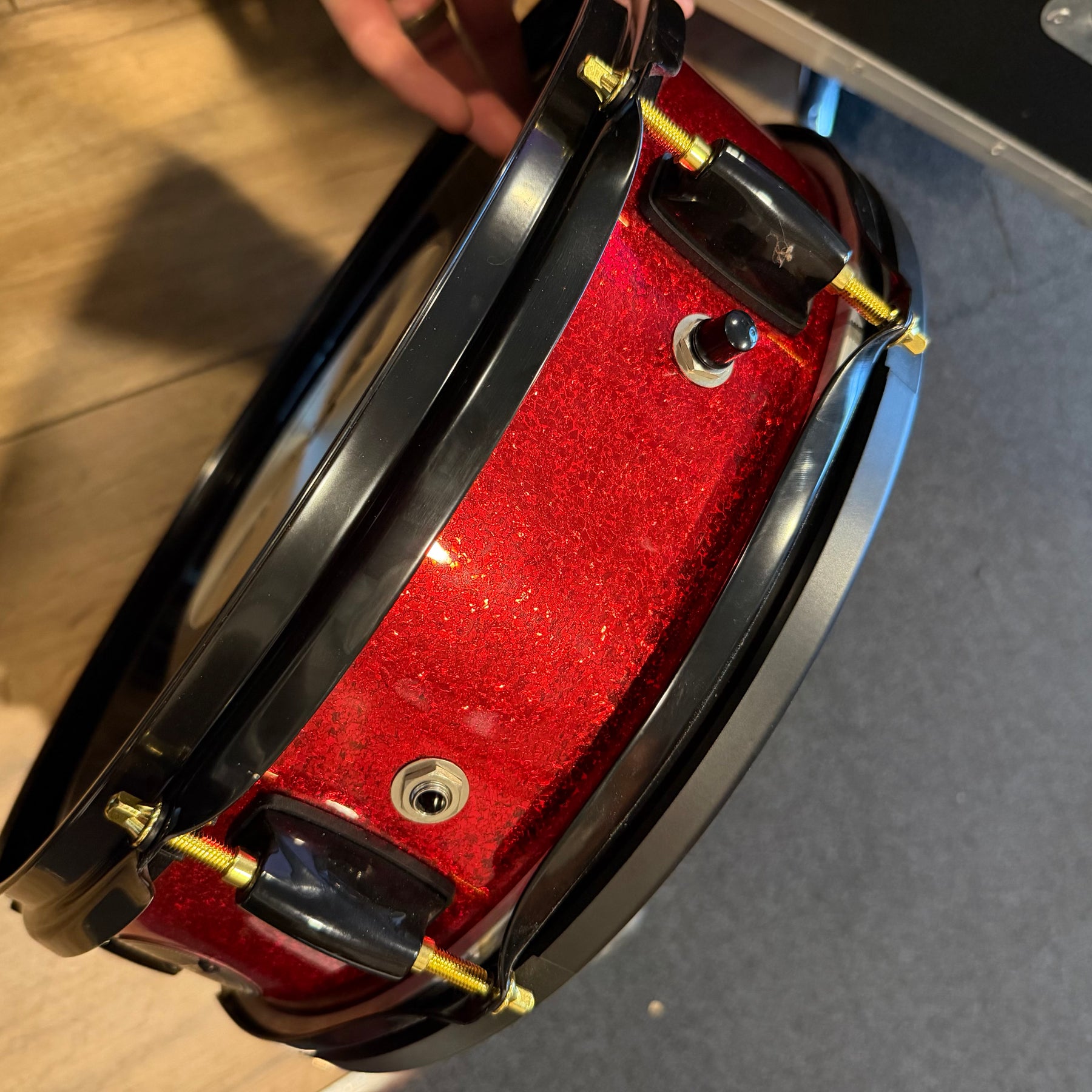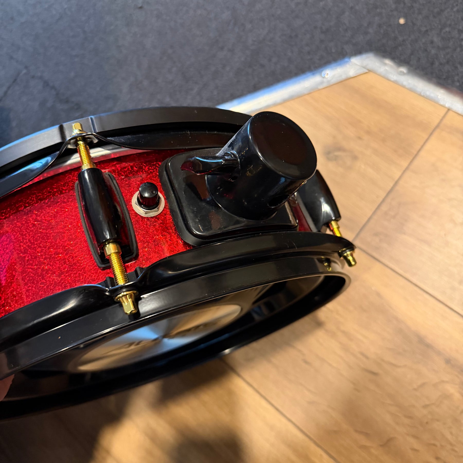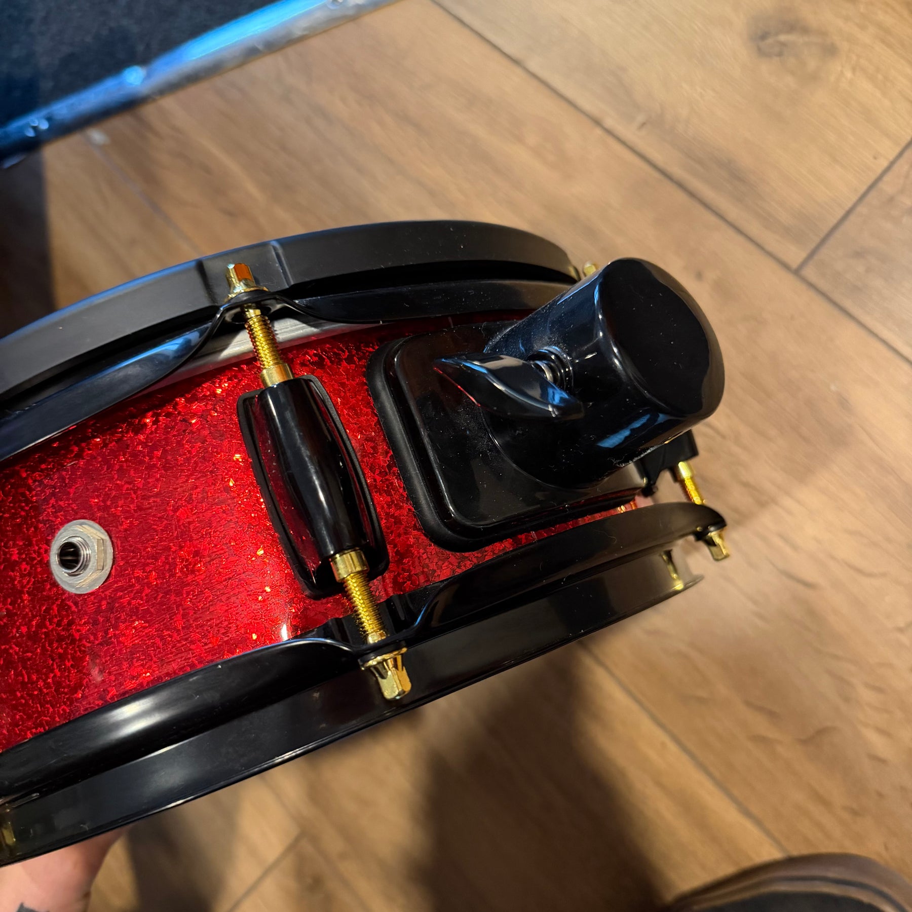 these are fantastic sounding kits this one has just been well gigged so does have some marks. There is quote heavy marking to parts of the lacquer and some pitting to the cast hoops on the 12. one of the bass drum hoops has been switched to a non original one