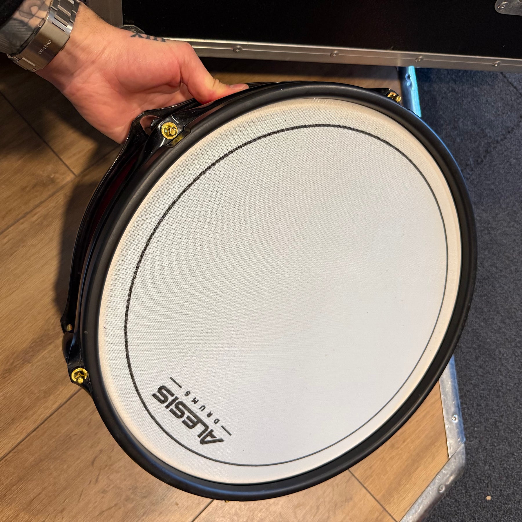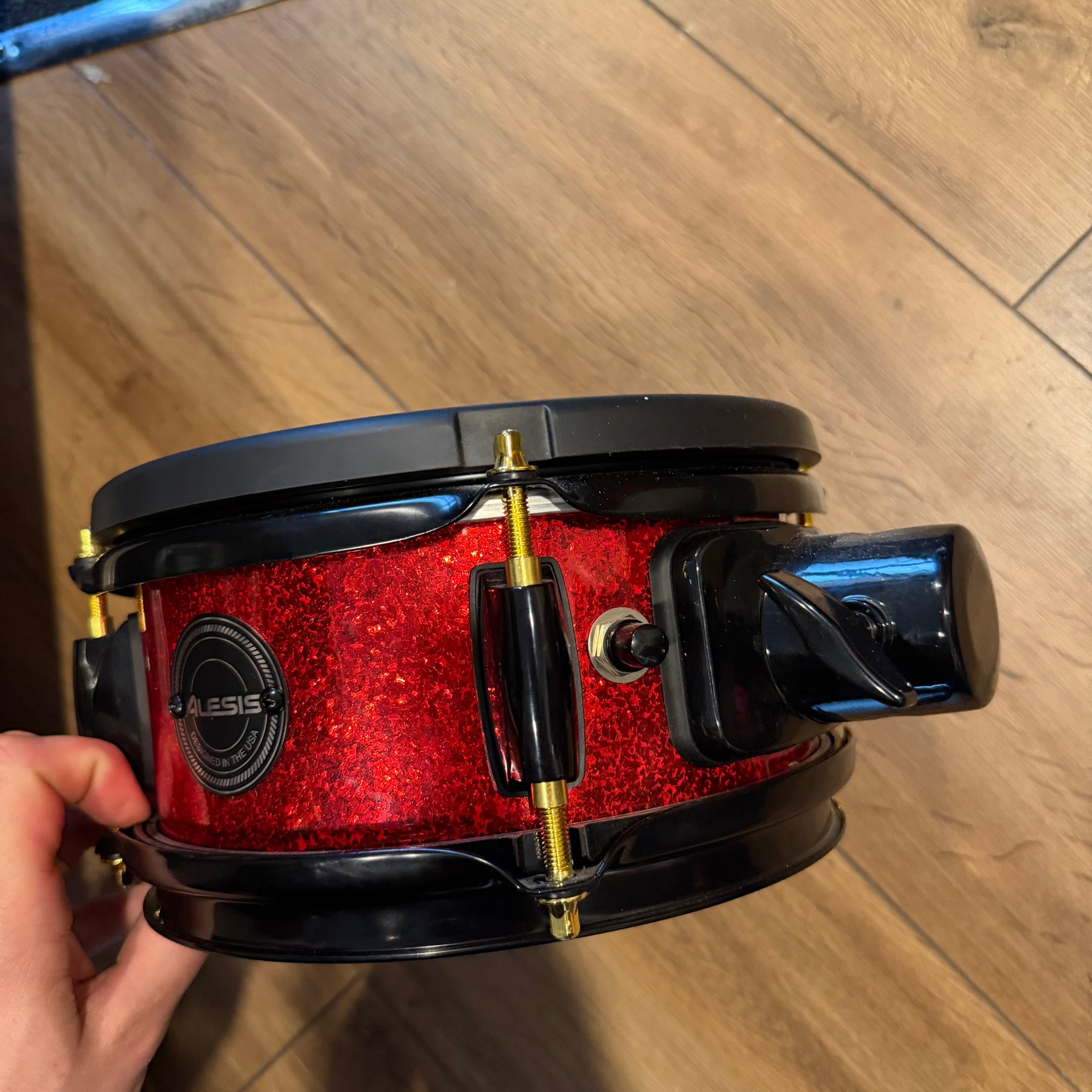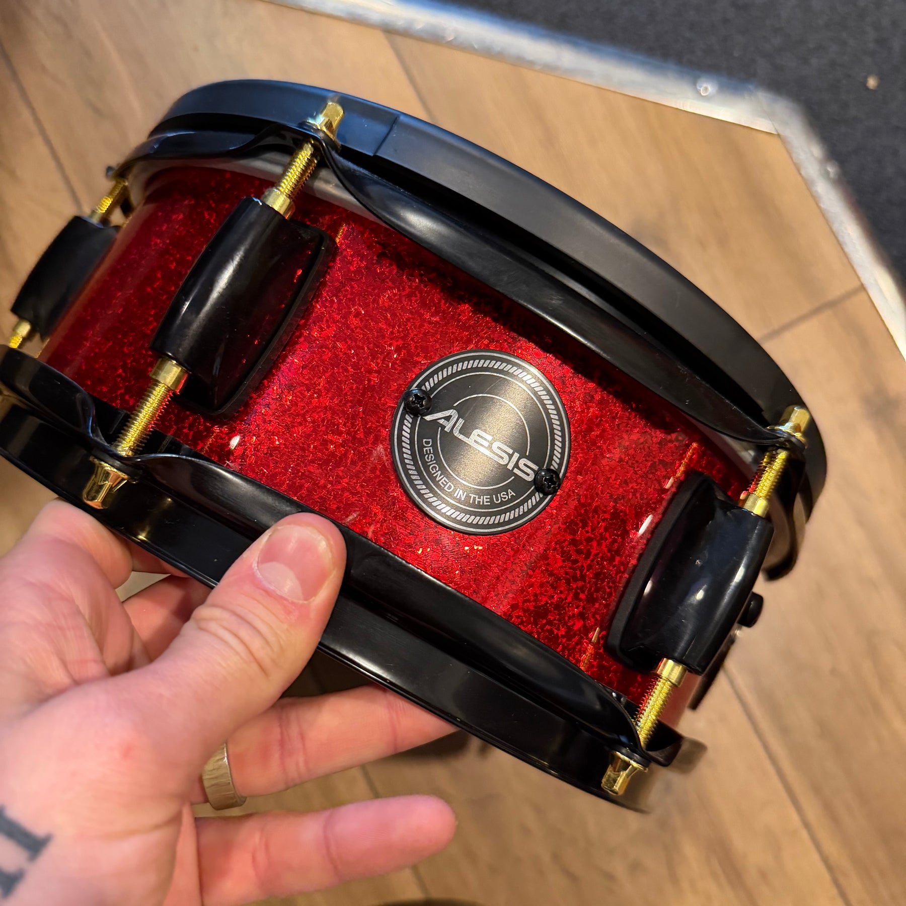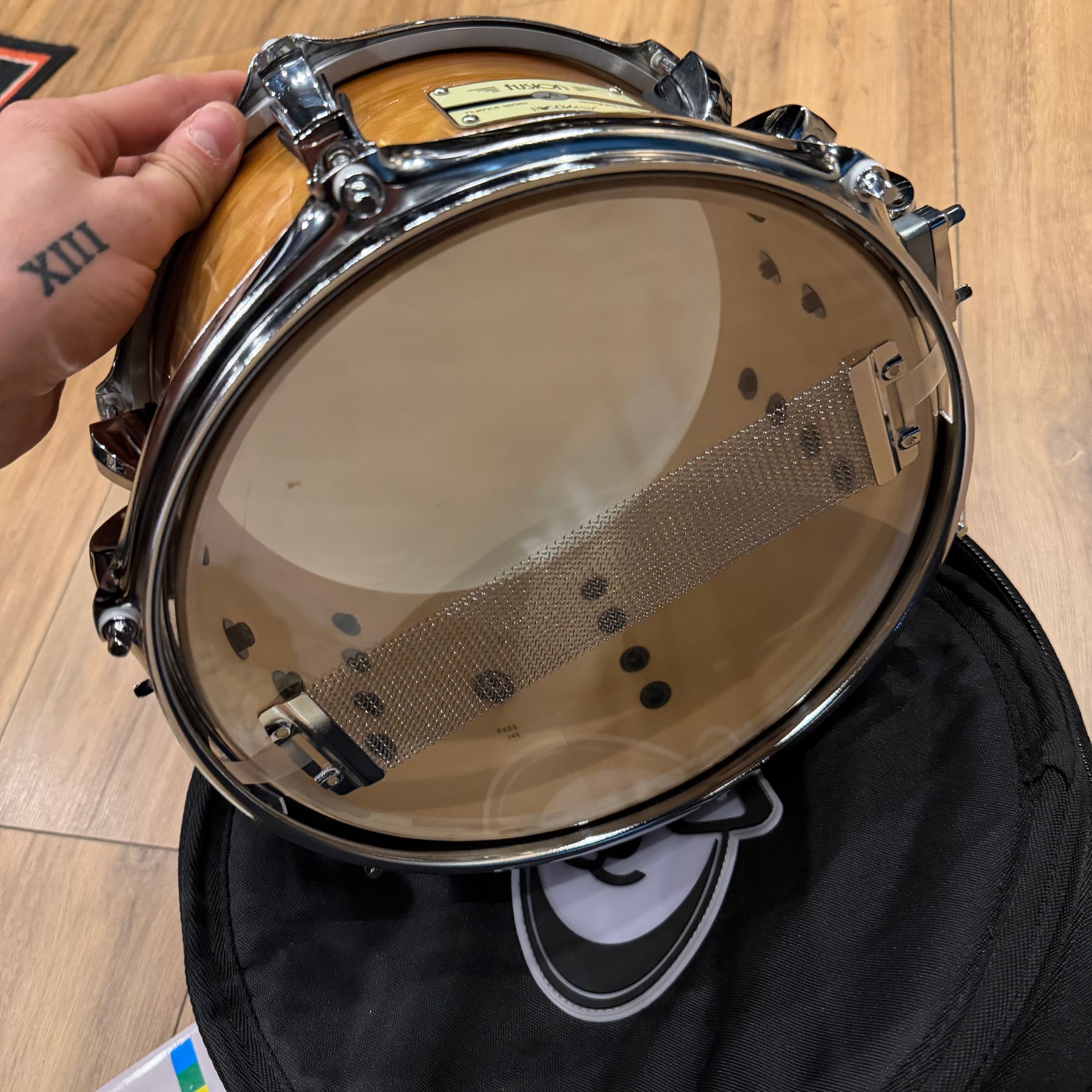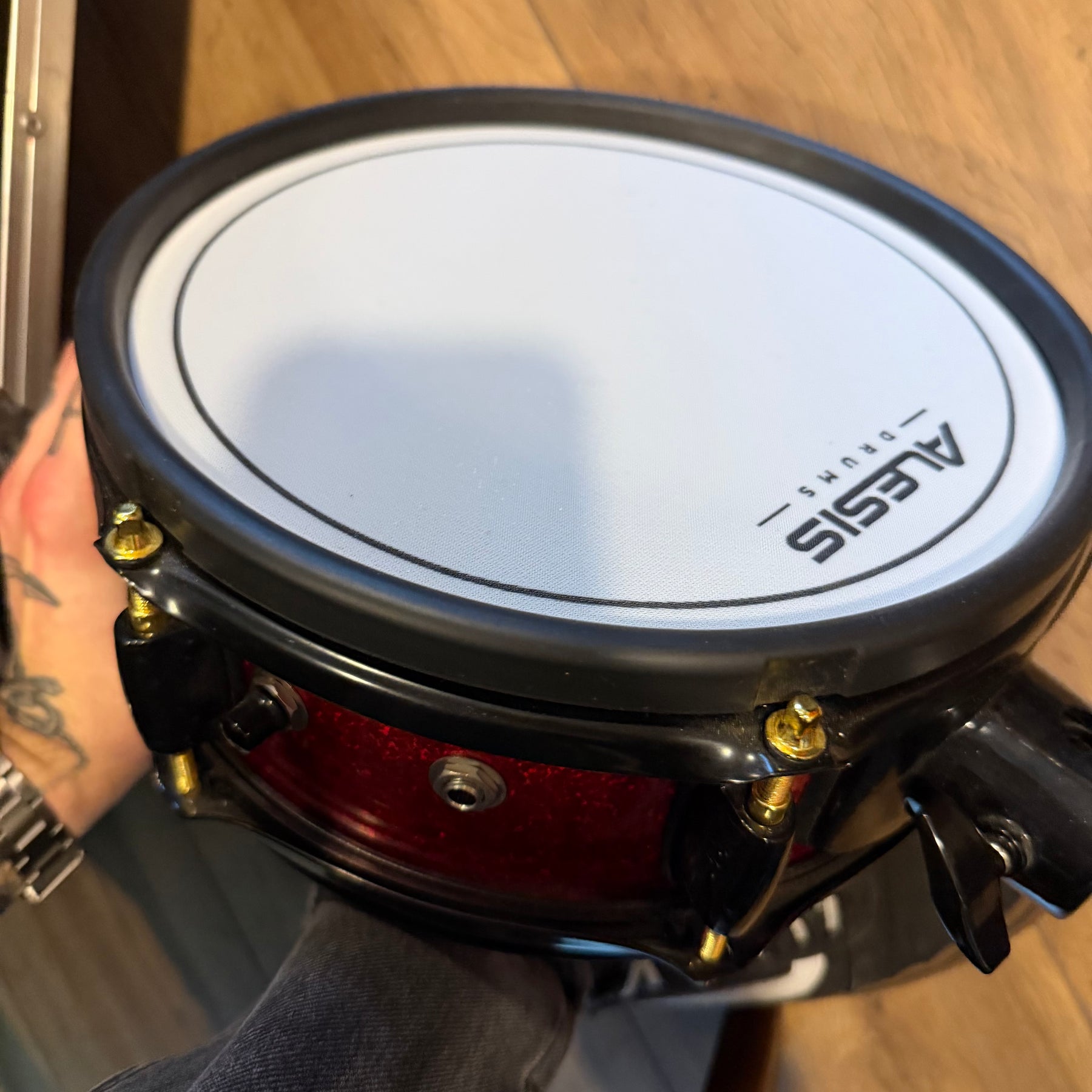 these are fantastic sounding kits this one has just been well gigged so does have some marks. There is quote heavy marking to parts of the lacquer and some pitting to the cast hoops on the 12. one of the bass drum hoops has been switched to a non original one