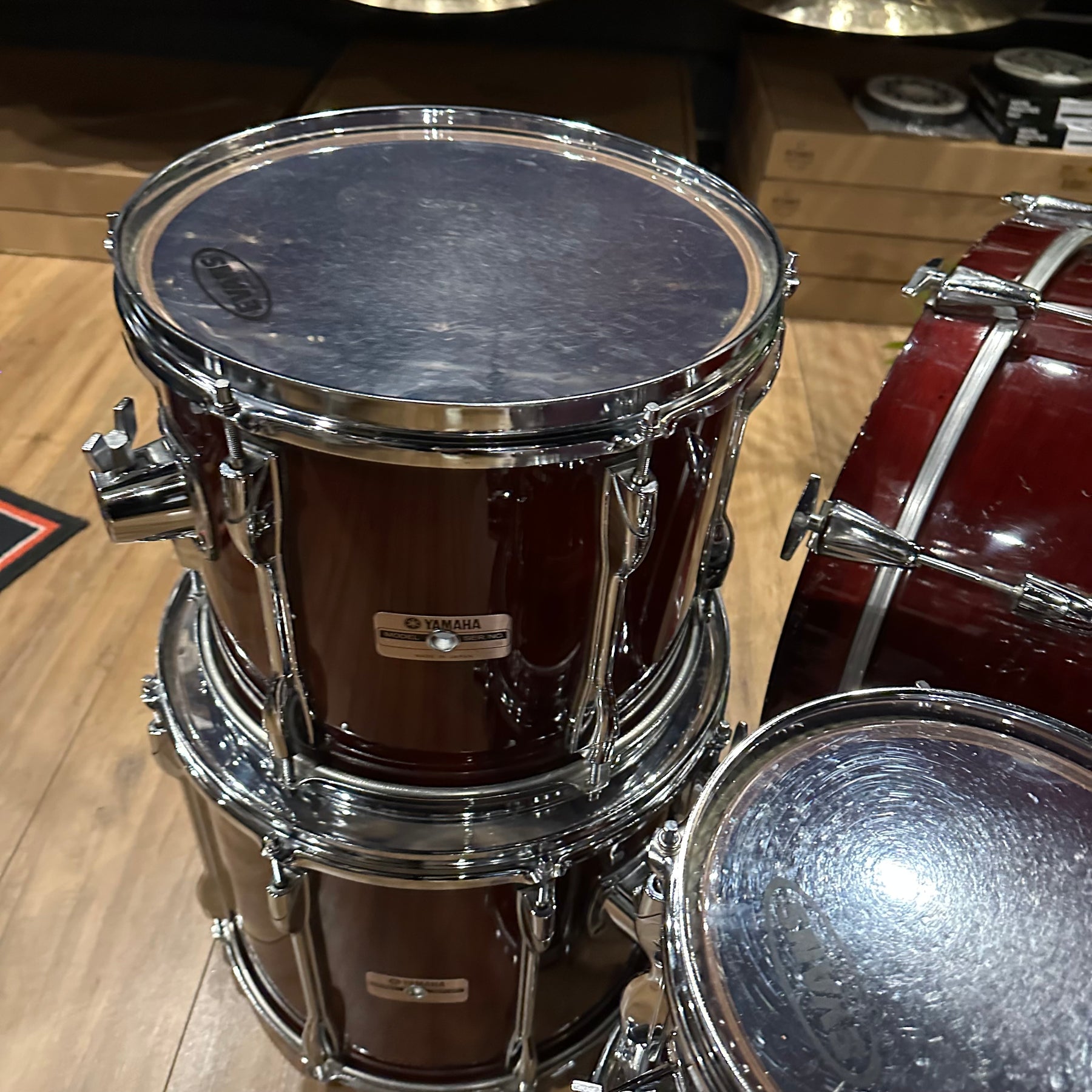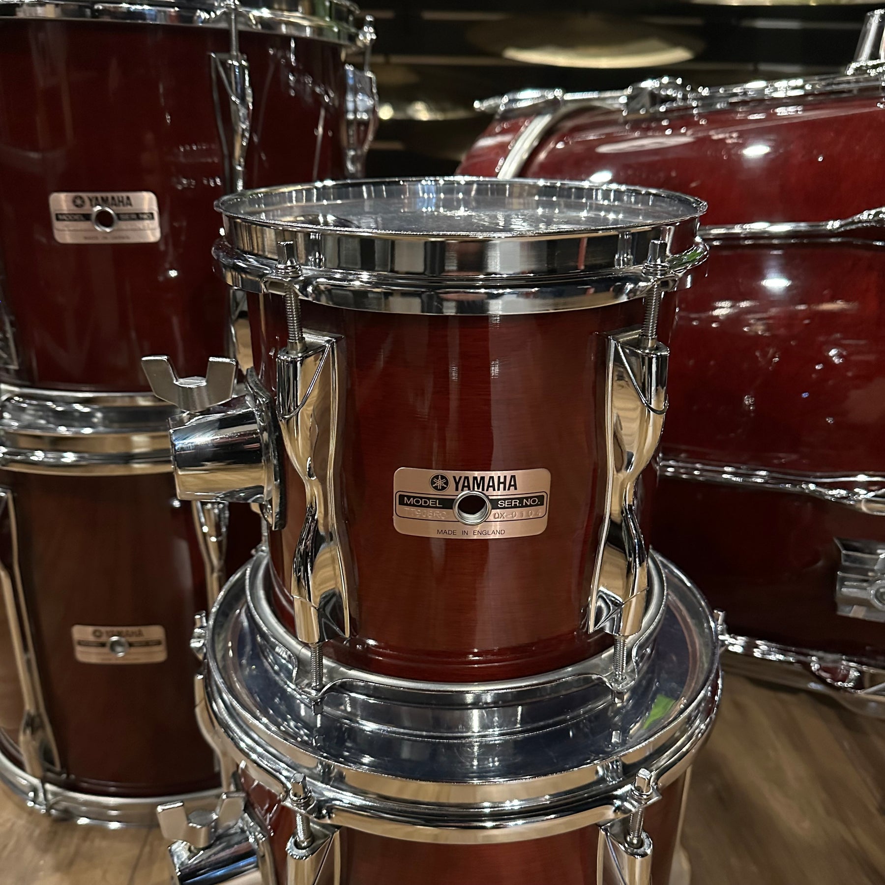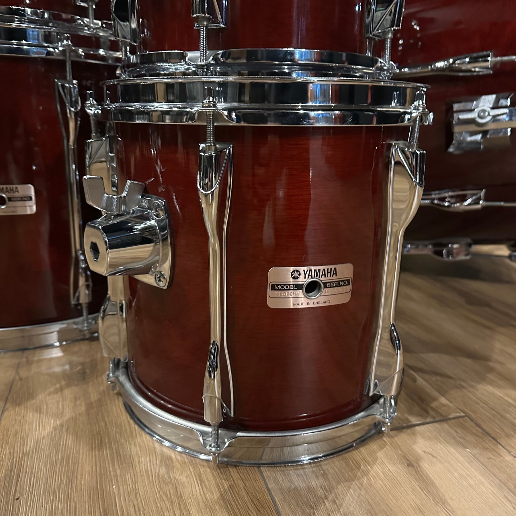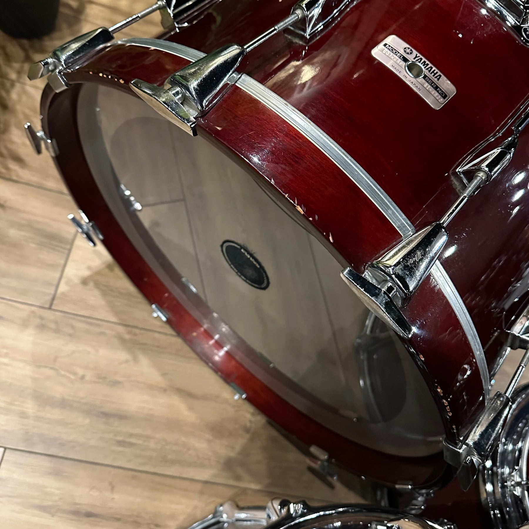 The legendary Yamaha RC in the classic cherry wood finish. This does have some scuffs as shown mainly to the bass drum and 12" rack Tom. All other drums seem to be in good condition for their age