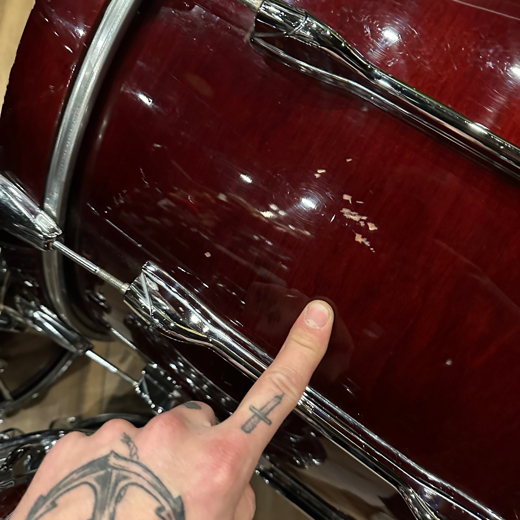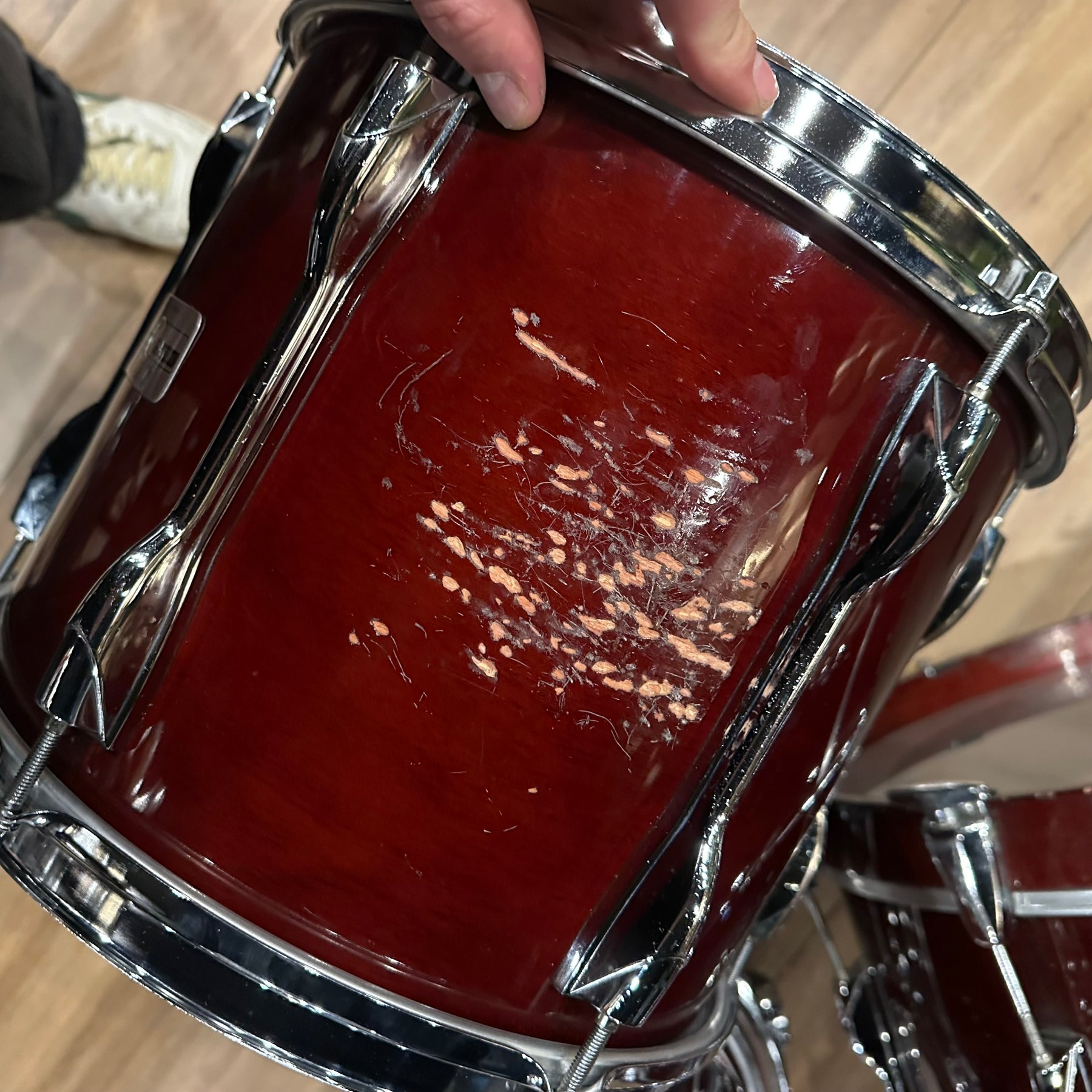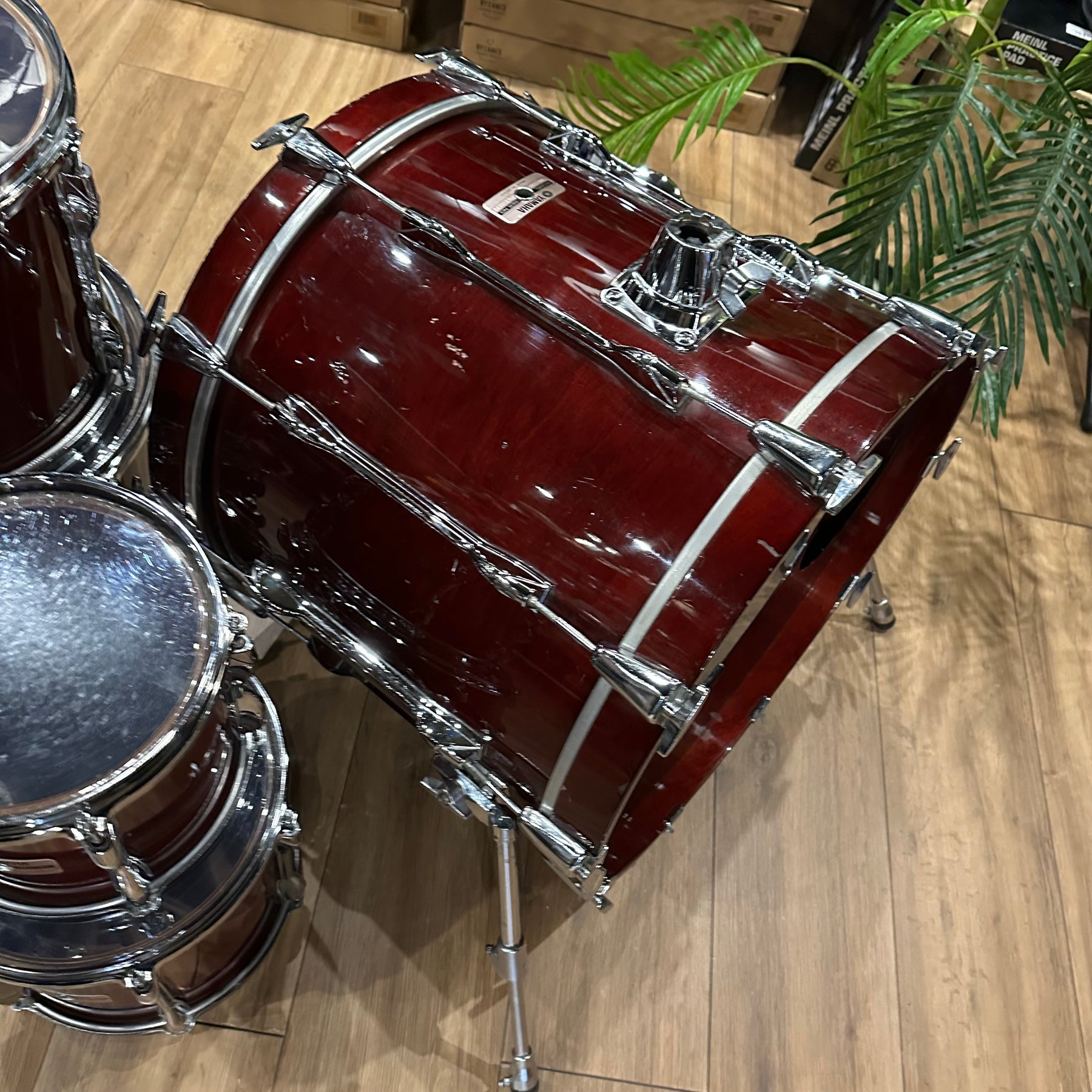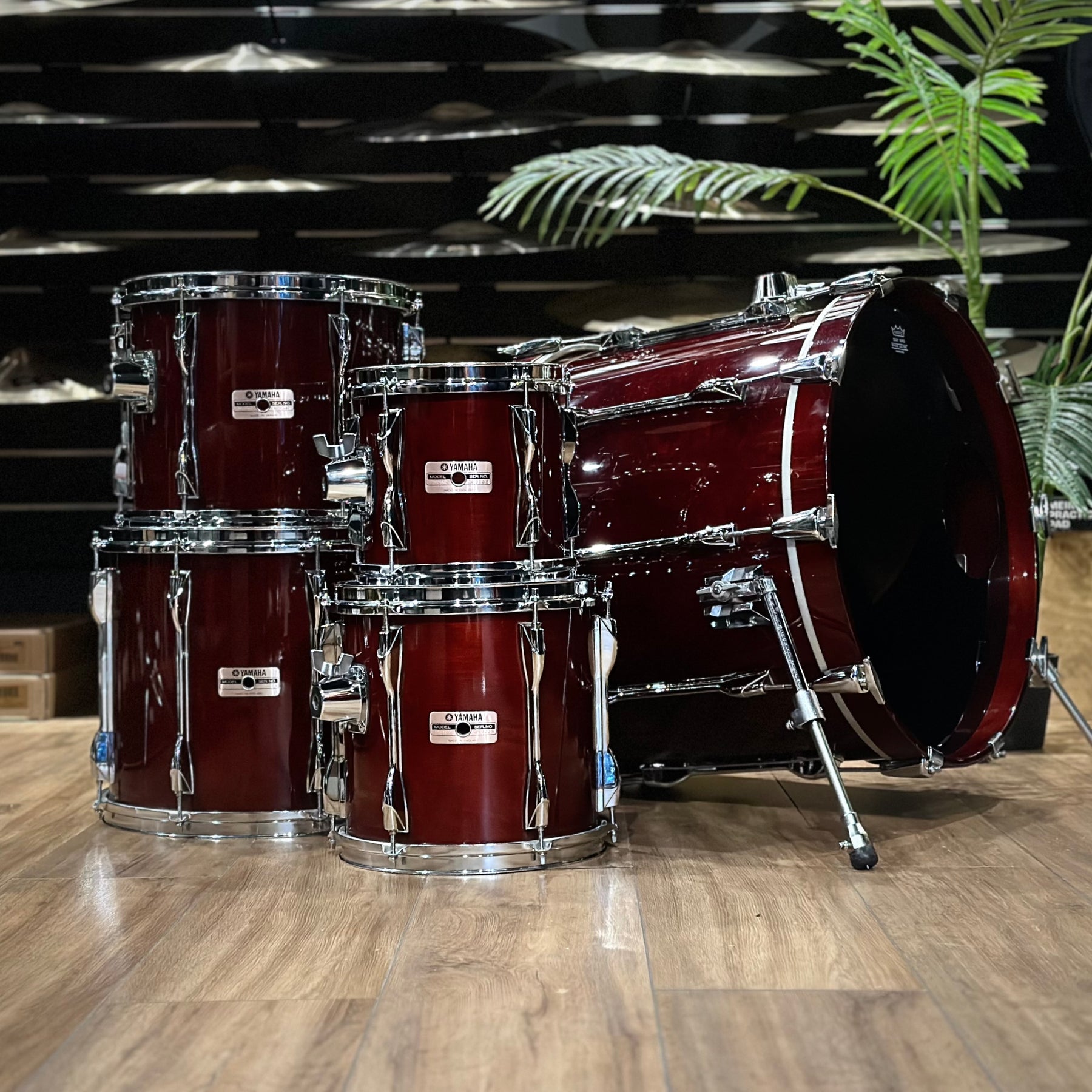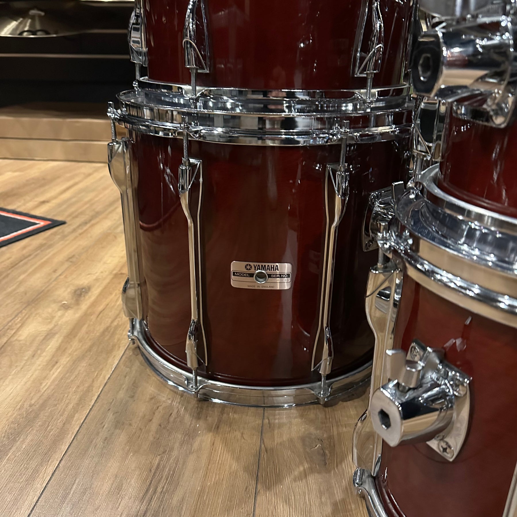 The legendary Yamaha RC in the classic cherry wood finish. This does have some scuffs as shown mainly to the bass drum and 12" rack Tom. All other drums seem to be in good condition for their age